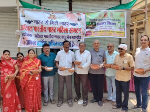 अखिल भारतीय नाहर महिला संगठन द्वारा भीषण गर्मी मे पक्षियों की प्यास बुझाने किया गया सकोरा वितरण